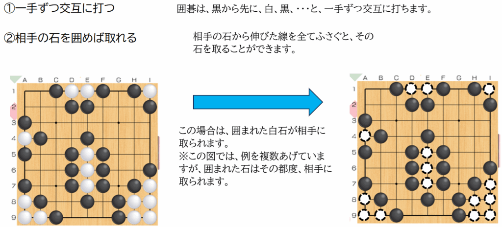 〇囲碁には5つのルールがあります。分かり易い動画もあるので、ご覧になって是非、始められてはいかがでしょうか。