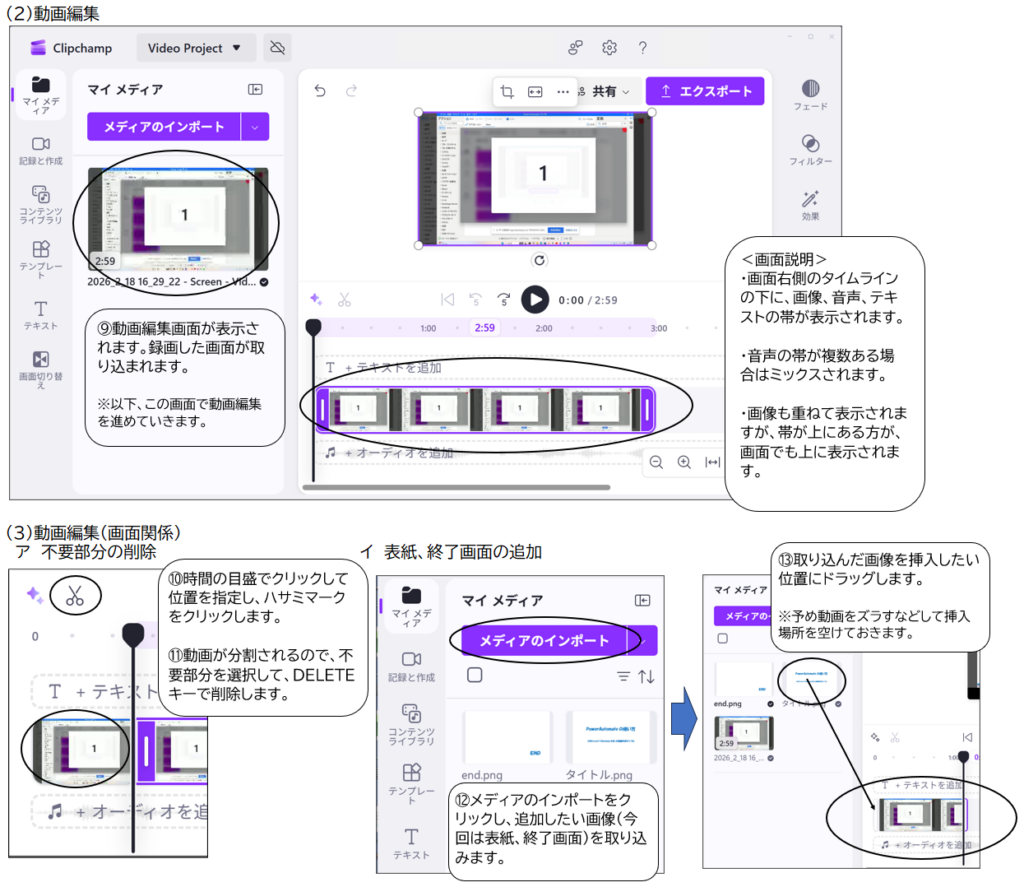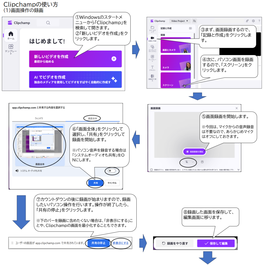 Clipchampを使ったパソコン画面操作説明動画(例)